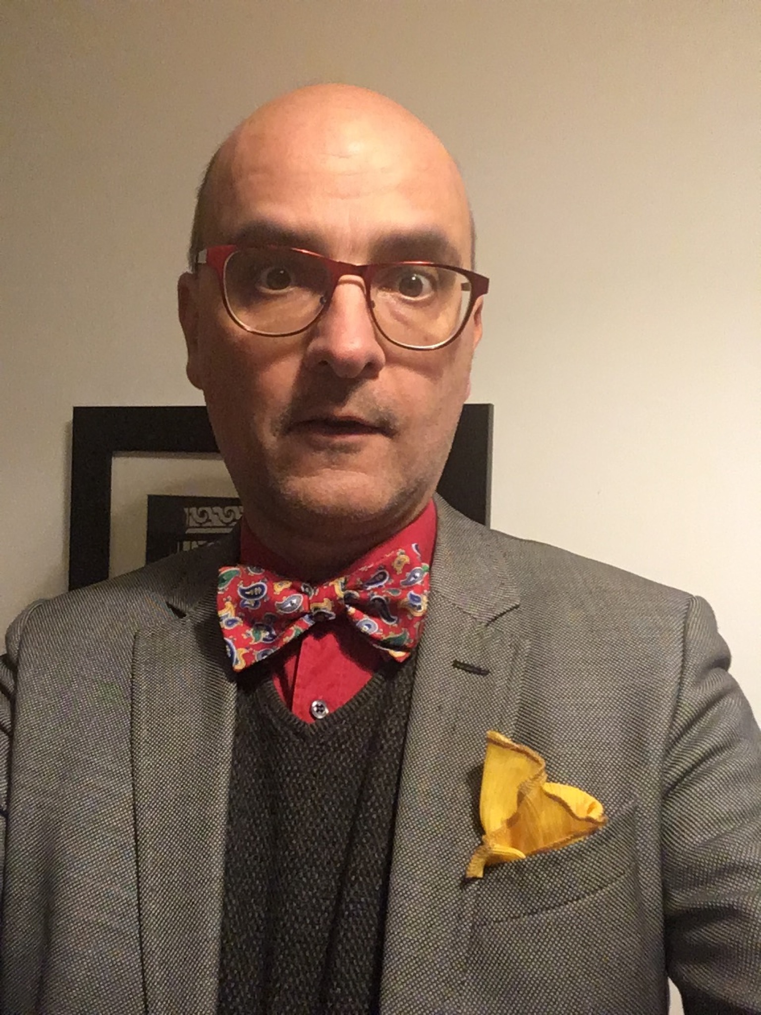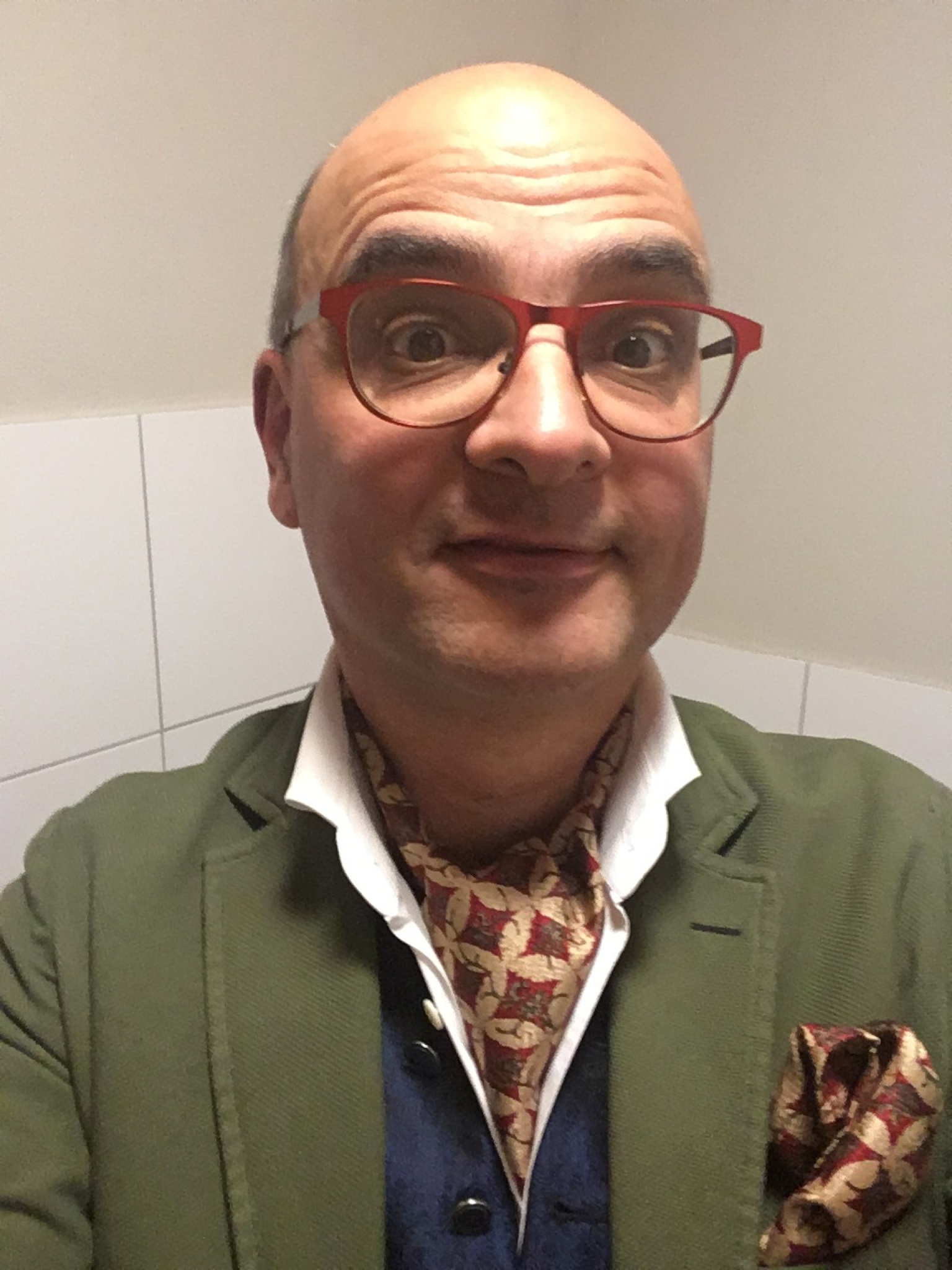 Es waren etwa zehn Stück, in gelb, grün, rot, violett usw. Seitdem bin ich ein ausgesprochener Fan von Einstecktüchern. Am liebsten trage ich sie in der Brusttasche meiner Lederjacke, was man vielleicht zunächst nicht denken würde. Sehr gerne natürlich auch mit Sakko, was die klassische Variante ist. Zu Weihnachten hat mir dann meine Frau noch ein ganz besonderes, selbst gefertigtes Einstecktuch geschenkt. Das hat natürlich einen Ehrenplatz bekommen.