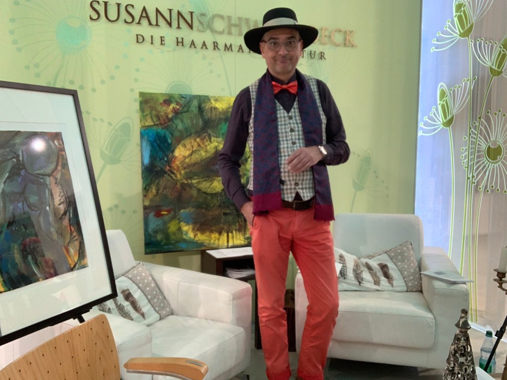 Im Mai 2022 begann die Zusammenarbeit von @farbeabstakt und @einfach.james. Bilder und Texte fanden im Projekt #malerei_trifft_mode zueinander und inspirierten sich gegenseitig. Heraus kam das Büchlein „Der begehbare Kleiderschrank“, welches aktuell nach dem passenden Verlag sucht. In fünf, jeweils individuell gestalteten Lesungen mit Bilderschau wurde das Projekt präsentiert und fand große Ressonanz.