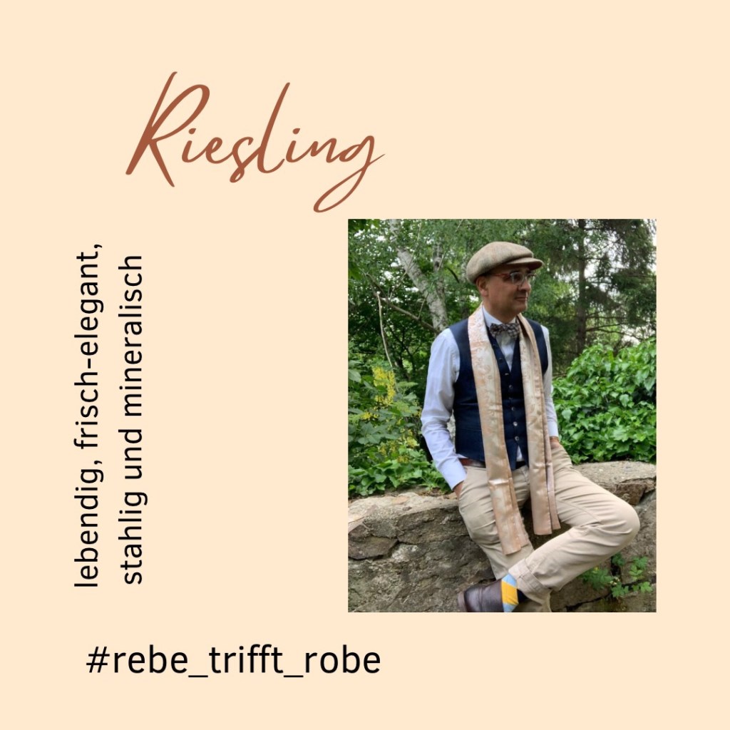 Ungeklärt blieb freilich in all diesen Abhandlungen die Frage, was man zum Riesling eigentlich tragen soll. Ein Kapitel zum Thema #rebe_trifft_robe hätte ich von Gevatter Knohll gewiss erwarten dürfen. Da hat er mich etwas enttäuscht. Ich nehme an, er hätte farbige Strümpfe, Hut, Beinkleid und Absatzschuhe empfohlen, wie es einem (früh-) barocken Mannsbild gefiel. Heute würde ich den Riesling etwas anders interpretieren. Aber die Frage, welches Gewand zu welchem Wein passt, stellt ja keiner. Oder? Wäre gewiss auch ein Beitrag zum Thema Weinkultur.