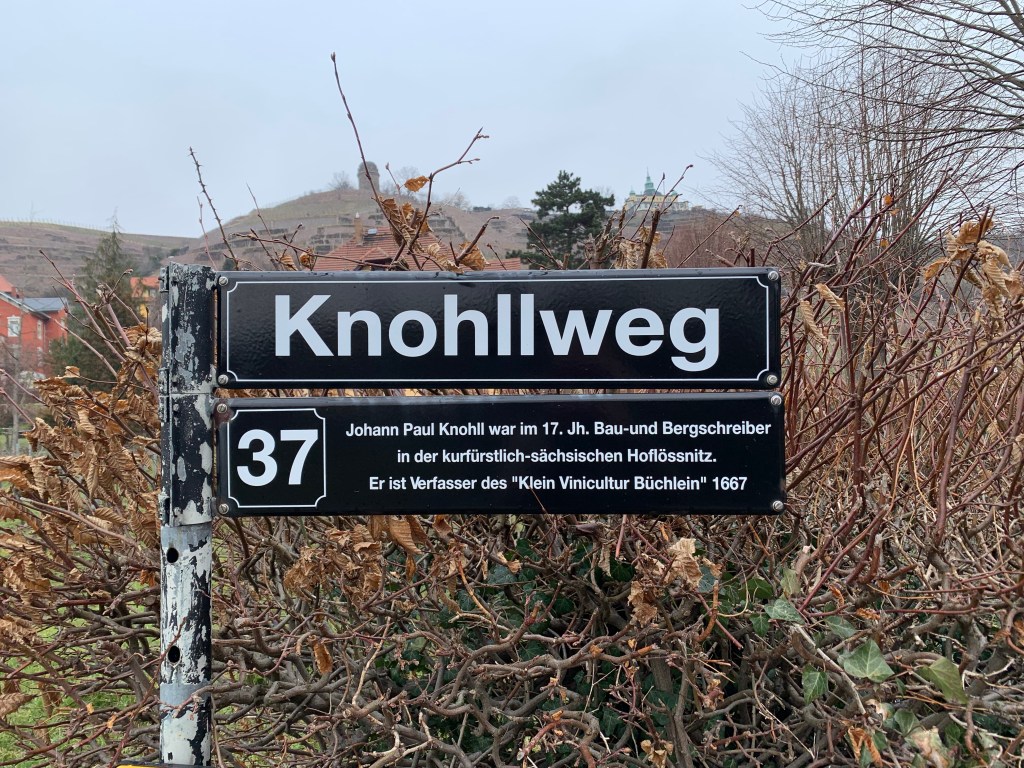Auf diese Geschichte stieß ich jüngst während eines Spaziergangs in den Berg- und Lust-Gefilden der Hoflößnitz, wo ich auf den – freilich recht bescheidenen – Knohllweg traf.