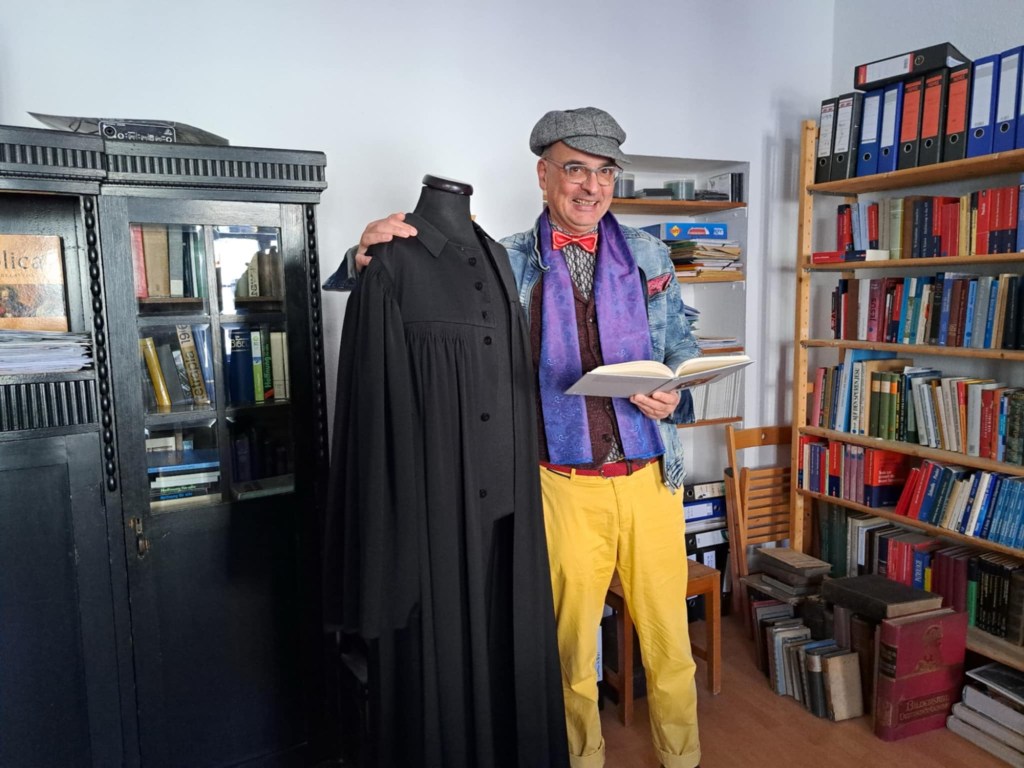 muss der Pfarrer sein. Ich musste schmunzeln. Ist zwar nicht meine Dienstkleidung, stimmt aber trotzdem. Naja. Manche nennen mich Mode-Pfarrer. Und so will ich heute tatsächlich