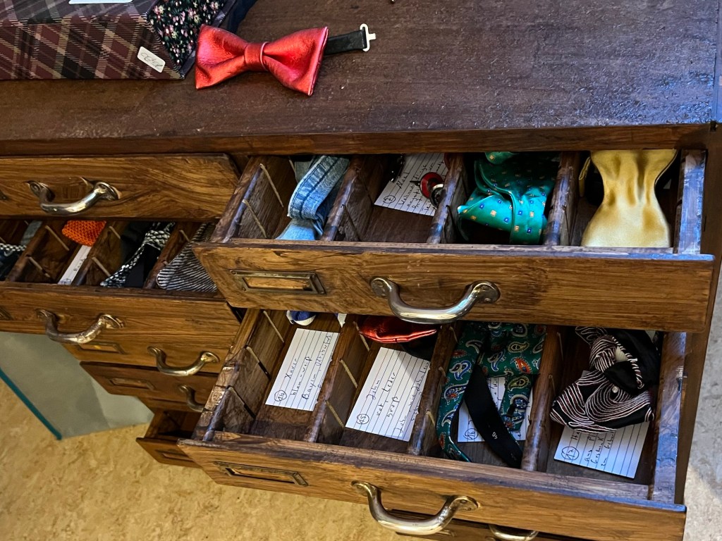 Ich stehe also morgens vor einem kleinen Schränkchen, das ich mir selbst hergerichtet habe. Es ist eine Art Apothekerschränkchen mit vielen kleinen Schubladen, die noch mal in sich untergliedert sind. Darin lagen meine