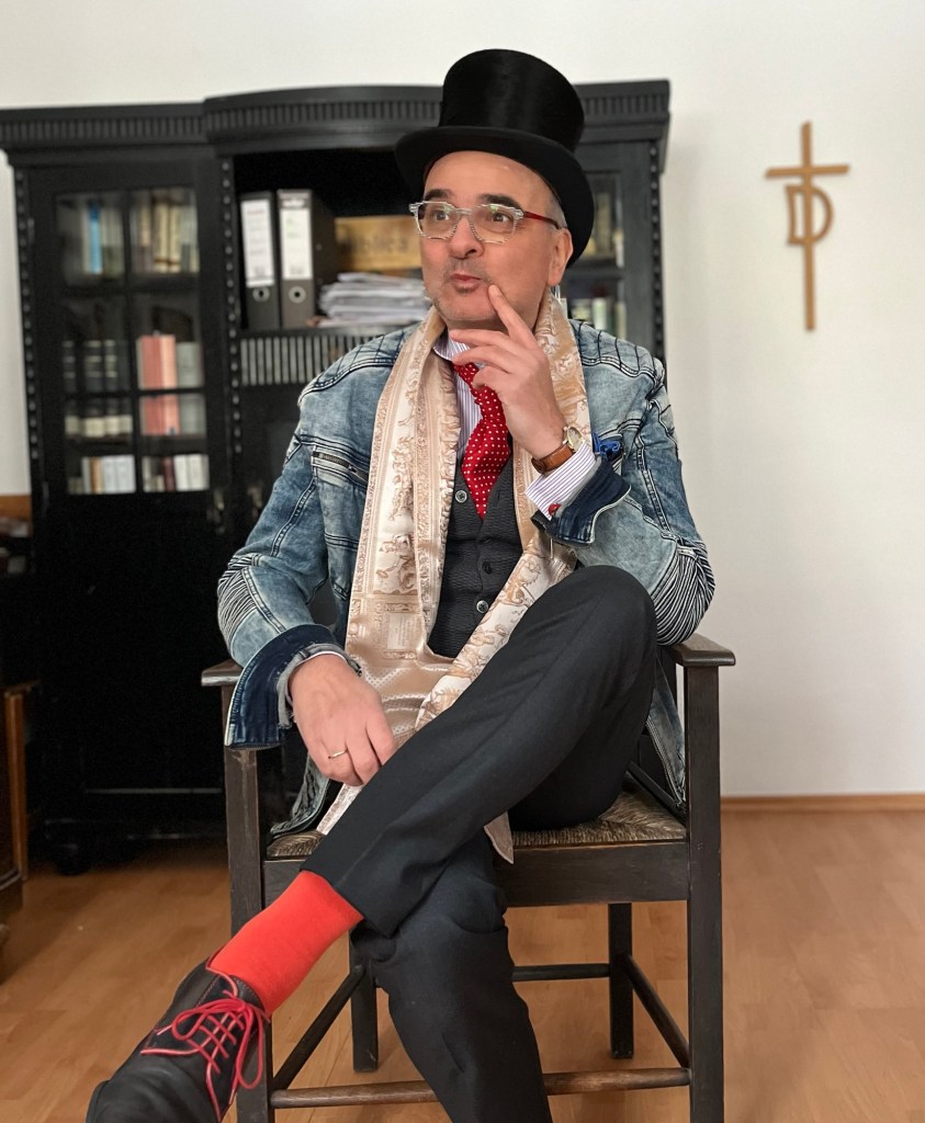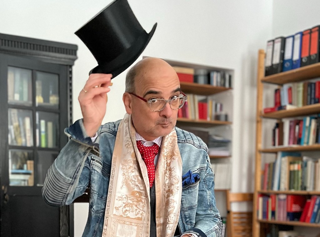 Insofern scheint der Zylinder zu mir passen, gerade weil er aus der Zeit gefallen ist. Ich bin nämlich der Meinung, dass die Kleidung nicht unbedingt sachlich oder gar zweckmäßig sein muss. Es reicht, wenn sie einfach schön ist. Das andere klappt dann schon irgendwie.