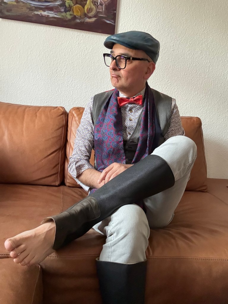 Jedenfalls muss ich zugeben, dass mein Kleidungsstil so ziemlich genau das Gegenteil von Aligoté ist. Eher ein bisschen aufgedreht. Manche sagen: „extravagant!“, was ich gar nicht so recht glauben will, aber wohl stimmt. Ich kann zwar zuweilen ziemlich schweigsam sein, aber auf einer Bühne gehe ich aus mir heraus. Und das Leben bietet mir tatsächlich viele Bühnen. Da kann es dann im Zweifelsfall durchaus eine Farbe mehr sein. Oder ein auffälliges Accessoir? Spezielle Schuhe? Ich selbst finde das meist gar nicht so speziell, aber manchmal habe ich schon ungläubige Blicke oder staunende Kommentare ausgelöst, wenn ich mal wieder meinen Auftritt hatte.