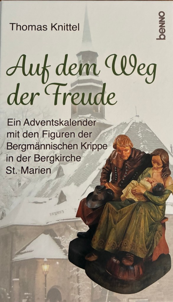 „Lassen Sie sich von der einzigartigen Bergmännische Krippe in der Bergstadt Annaberg-Buchholz durch den Advent begleiten. Holzbildhauer schufen in den Jahren 2000 bis 2015 über 30 etwa 1,20 Meter große Krippenfiguren, die in der Bergkirche St. Marien das Leben und Schaffen der Bergleute und Bürger der Bergstadt im 19. Jahrhundert zeigen. Der Annaberger Pfarrer Thomas Knittel hat zur Lebenswelt dieser Figuren nachdenkliche und humorvolle Gedanken formuliert, die auf ungewöhnliche Weise die Vorfreude auf das Weihnachtsfest wecken. Die faszinierenden Fotografien der Krippenfiguren wurden mit Hintergrundbildern aus der heutigen Zeit lebendig in Szene gesetzt.“