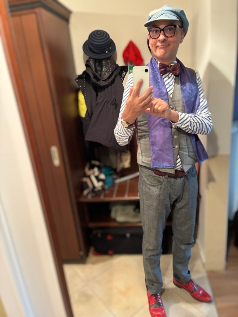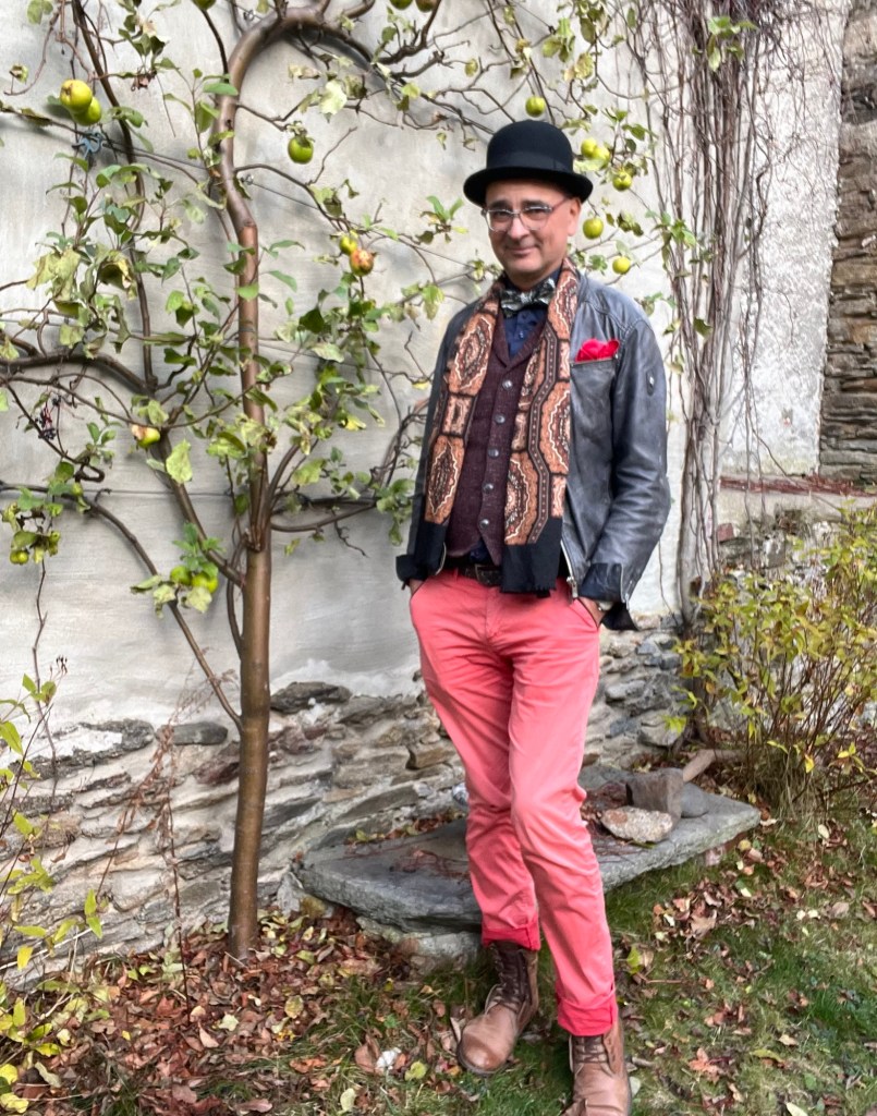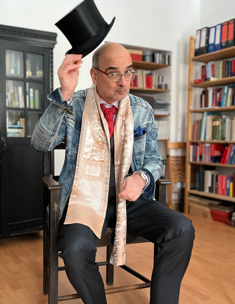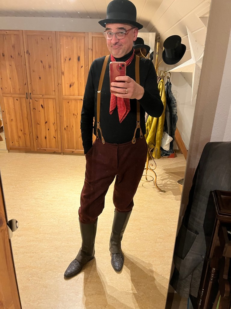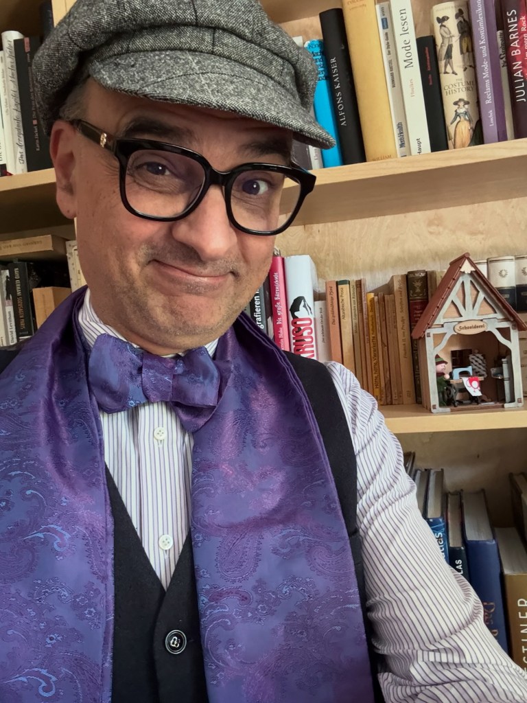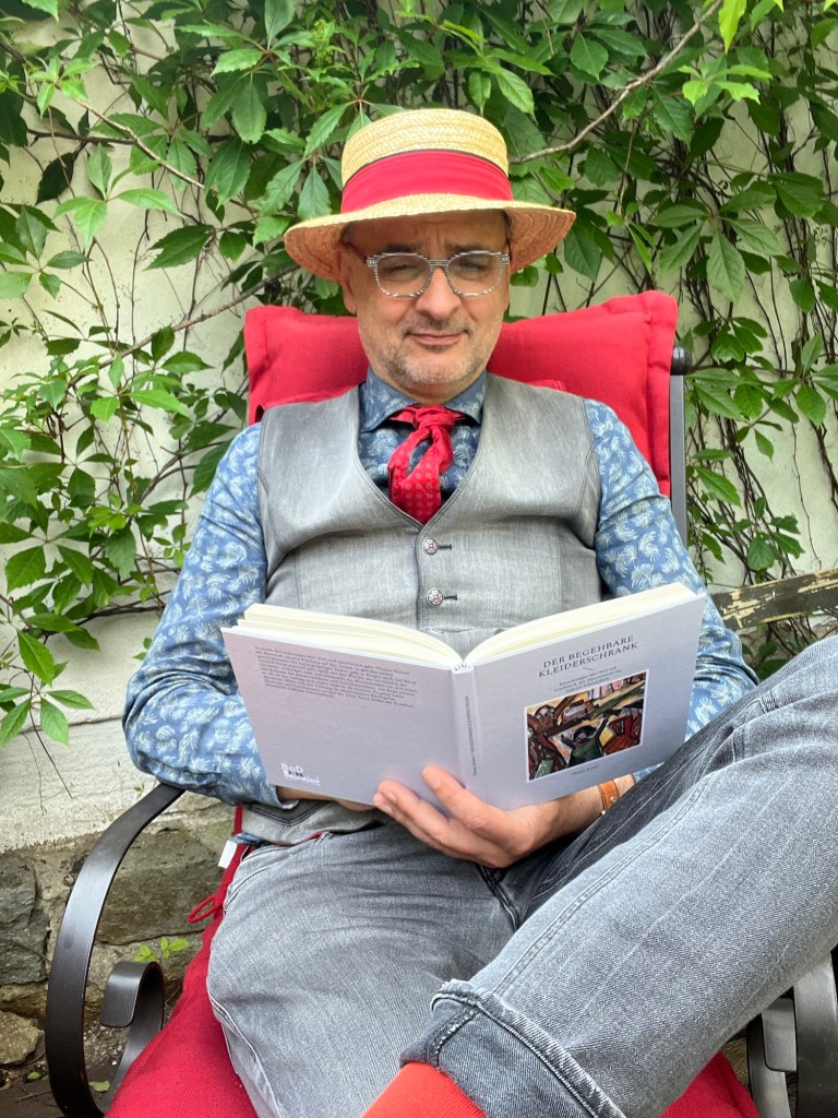 Aber vielleicht ist das gar nicht wichtig. Muss ich denn wissen, wer ich bin? Mit etwas Mut und Humor überlebe ich gewiss auch den nächsten modischen Fehltritt, der ganz sicher kommen wird. Es heißt, Mode sei eine Auseinandersetzung mit der eigenen Persönlichkeit. Und so entdecke ich den Anzugträger mit Jeans-Allüren in mir, den grauen Herrn mit roten Schnürsenkeln. Den Fliegenmann mit Lederjacke oder was auch immer da noch kommen mag. Bin selbst gespannt.“ (Der begehbare Kleiderschrank)